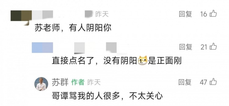 Previously, Guan Weijia issued an article attacking Su Qun. Related links → Is the commentary industry getting started? Guan Weijia blasted Su Qun for "feeding shit soup" and asked him to delete the article and admit his mistake. In response, Su Qun said: "There are many people in Gotham who scold me, so I don't care much." Note: Gotham City is a city of crime and villains in DC comics, with villains such as the "Joker".