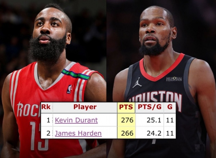 Durant scored 276 points in the first 11 games of his Rockets career, surpassing Harden and ranking first in team history.