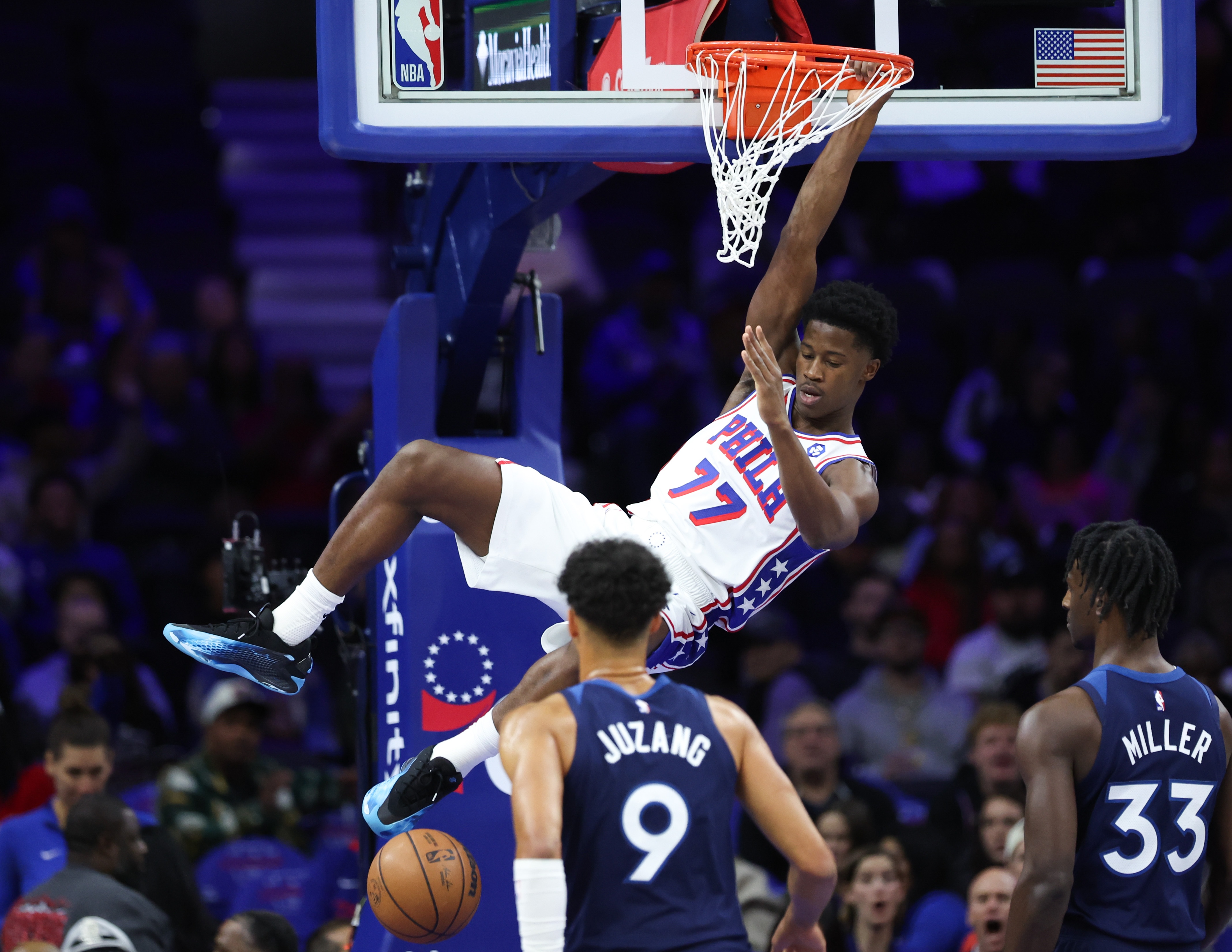 In the NBA preseason, the 76ers defeated the Timberwolves 126-110. Edgecomb, the 76ers' draft pick this year, performed brilliantly in this game. Not only did he have a strong impact on the offensive end, but he also completed many steals and counterattack layups on the defensive end. He played 34 minutes, made 10 of 18 (2 of 6 three-pointers), 4 of 4 free throws, scored 26 points, 6 rebounds, 3 assists and 5 steals, including 4 offensive rebounds, with a plus-minus of +13.
