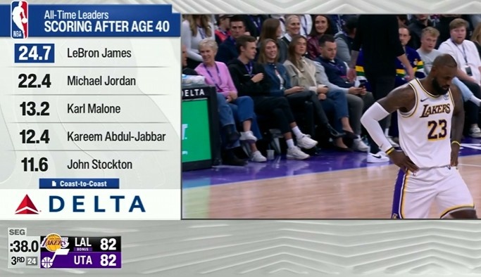 Getting older and getting stronger! James leads the scoring list over the age of 40 with 24.7 points per game, followed by Jordan with 22.4 points.