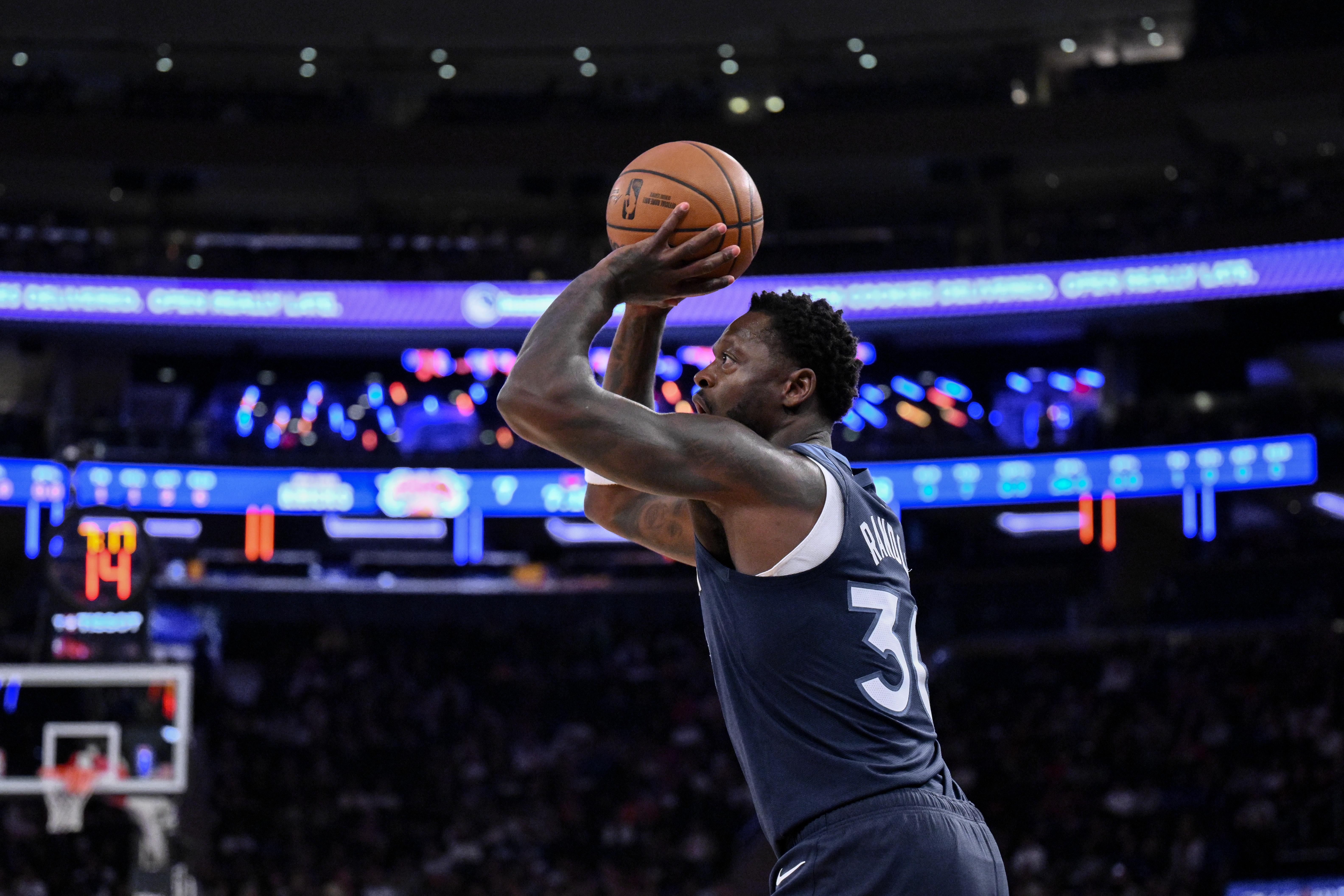 In the NBA regular season, the Timberwolves lost to the Lakers 110-128. In this game, Timberwolves player Randall started for 30 minutes, made 9 of 16 (4 of 8 three-pointers), 4 of 5 free throws, scored 26 points, 9 rebounds and 5 assists, made 3 turnovers, and had a plus-minus value of -15.