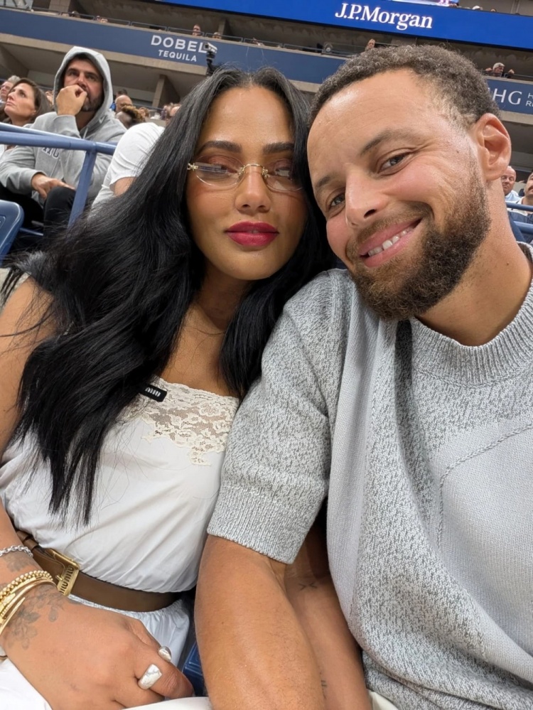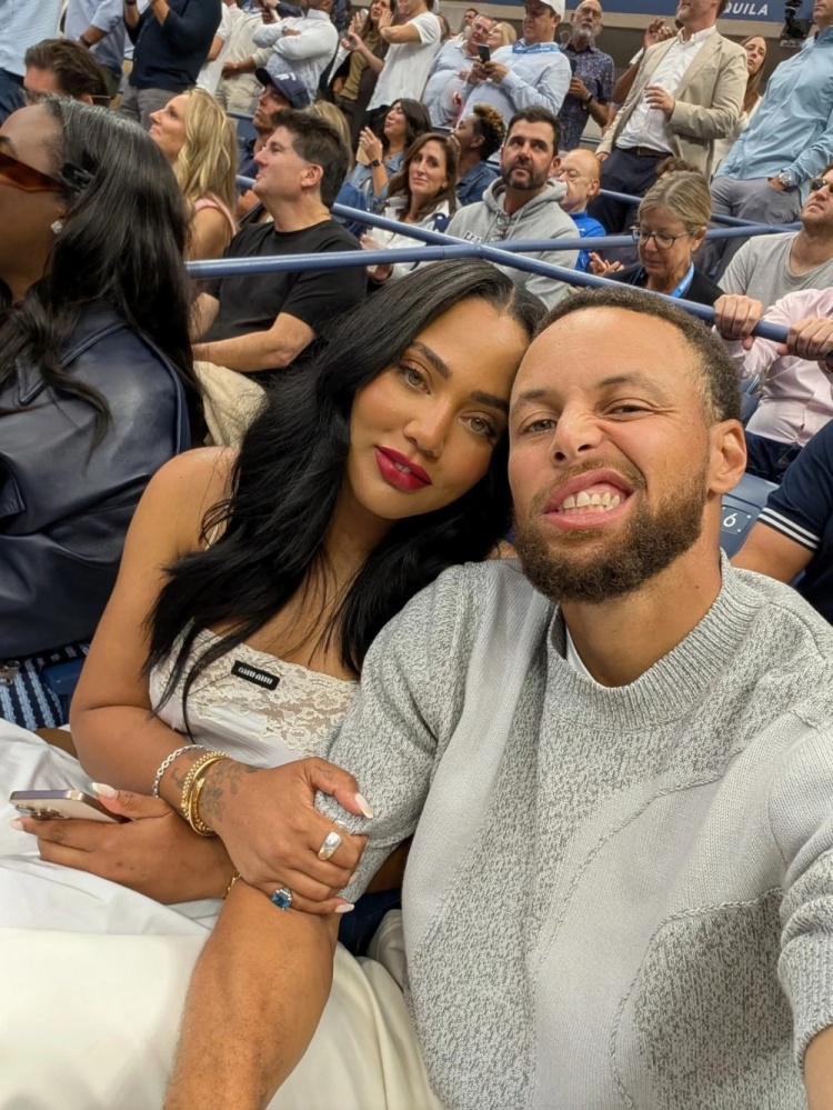 XiuSports > Basketball > Sprinkle sugar on site! Curry posted a photo of watching the game with his wife Ayesha on the US Open, and Curry also appeared!