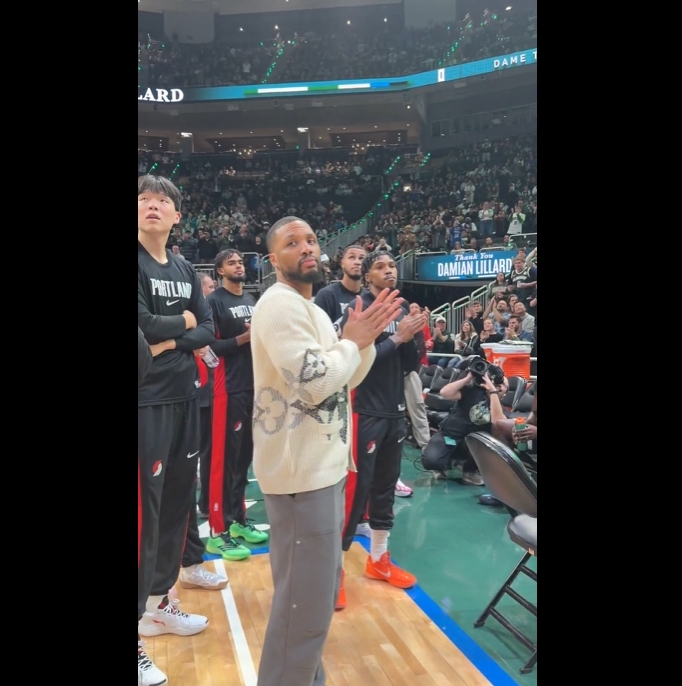 XiuSports > Basketball > The Bucks played a video tribute at home. Lillard pointed to the sky and beat his chest to signal. Xiao Yang behind him was a little confused.