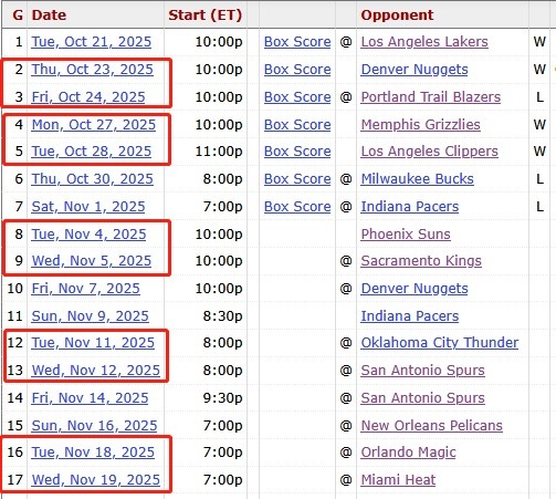 Tired old comrade! The Warriors have played a total of 5 back-to-back games in the first 17 games of the season, and other teams have a maximum of 3 during the same period.