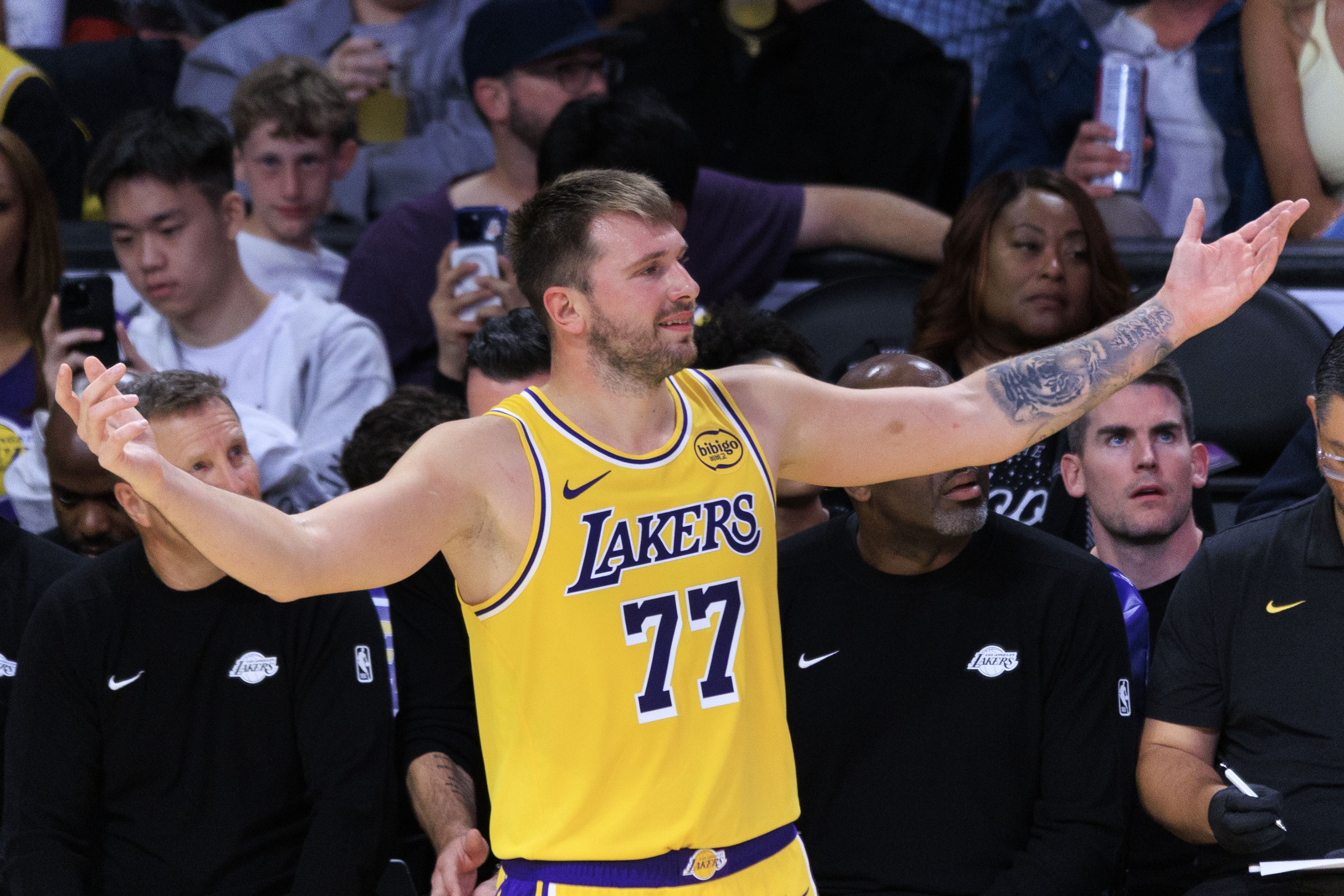 The new NBA regular season kicked off. The Lakers and Warriors had a head-to-head confrontation in the first game. In the end, the Lakers lost to the Warriors 109-119. Doncic played 41 minutes and made 17 of 27 shots, including 2 of 10 three-pointers and 7 of 10 free throws. He scored 43 points, 12 rebounds, 9 assists, 2 steals and 1 shot, with a plus-minus of -8. Doncic's explosive performance still failed to help the team win. Looking at NBA history, where does Doncic's 43 points in the opening game rank? Who has a double harvest of wins and data? Lao Zhen strikes while the iron is hot to take stock. 19, Doncic 43 points October 22, 2025 Lakers 109-119 Warriors, played 41 minutes, 17% of 27 three-pointers, 10 of 2%, 26 free throws, 7 of 10, 43 points, 12 rebounds, 9 assists, 2 steals and 1 shot 19, Jaylen Rose 43 points October 31, 2001 Pacers 97-103 Nets Played 44 minutes, 18% of 27, 26 three-pointers, 3 of 2%, 26 free throws, 6 of 5, 43 points, 6 rebounds, 3 assists, 1 steal 19, Chamberlain 43 points October 25, 1959 Warriors 118-109 Knicks played 48 minutes 17% of 27 free throws, 9 of 15, 43 points, 28 rebounds, 1 assist 19, Walter Bellamy 43 points, October 17, 1962, Wizards 119-121 Knicks, played 48 minutes, 16% of 27, 26 free throws, 11 of 15, 43 points, 21 rebounds, 6 assists 16, Jerry Stackhouse 44 points November 1, 2000 Pistons 104-95 Raptors Played 42 minutes, 17% of 35, 26 of 3 three-pointers, 1% of 26 free throws, 9 of 10, 44 points, 5 rebounds, 3 assists, 1 block 16, Morant 44 points December 24, 2020 Grizzlies 119-131 Spurs Played 35 minutes, 18% of 27, 2 of 26 three-pointers, 1% of 26 free throws, 8 of 7, 44 points, 2 rebounds, 9 assists, 2 steals, 1 block 16, Harden 44 points December 27, 2020 Rockets 126-128 Trail Blazers (overtime) 43 minutes played 12% of 21 three-pointers, 6% of 26 free throws, 16 of 14, 44 points, 4 rebounds, 17 assists, 1 steal 14, Latrell Sprewell 45 points November 1, 1997, Warriors 113-129 Timberwolves, played 41 minutes, 18% of 31, 26 of 7 three-pointers, 4% of 26, 6 of 5 free throws 45 points, 3 rebounds, 7 assists 14, Kobe Bryant 45 points October 31, 2007, Lakers 93-95 Rockets, played 43 minutes, 13% of 32 three-pointers, 3 of 1%, 26 free throws, 18 of 27, 45 points, 8 rebounds, 4 assists, 4 steals, 1 shot 10, Wald Fury 46 points October 13, 1979, Clippers 102-103 Lakers, played 41 minutes, 19% of 29, 8 of 26 free throws, 46 points, 7 rebounds, 5 assists, 7 steals, 1 shot 10, Monta Ellis 46 points October 28, 2010, Warriors 132-128 Rockets, played 40 minutes 18% of 24, 2 of 26 three-pointers, 1% of 26, 9 of 12 free throws, 46 points, 3 rebounds, 2 assists, 2 steals 10, Dale Ellis 46 points November 5, 1988 SuperSonics (Thunder) 104-97 Jazz, played 37 minutes, 14% of 23, 26 of 5 three-pointers, 1%, 26 free throws, 17 of 19 46 points, 5 rebounds, 1 assist, 3 steals 10. Jaylen Brown 46 points October 21, 2021 Celtics 134-138 Knicks (double overtime) Played 46 minutes, 16% of 30 three-pointers, 14 of 8%, 26 free throws, 6 of 8 46 points, 9 rebounds, 6 assists, 3 steals and 1 shot 8, Kiki Vandeweghe 47 points October 28, 1984, Trail Blazers 140-119 Kings, played 38 minutes, 19% of 23, 9 of 26 free throws, 47 points, 4 rebounds, 1 assist, 1 shot 8, Alex English 47 points October 26, 1985, Nuggets 119-105 Warriors, played 39 minutes 16% of 31, 26 free throws, 15 of 18, 47 points, 5 rebounds, 3 assists, 1 steal, 1 shot 7, Chamberlain 48 points October 20, 1961, Warriors 113-118 Lakers, played 48 minutes, 21% of 44, 26 free throws, 12 of 6, 48 points, 25 rebounds, 1 assist 4, Jordan 50 points November 2, 1986 Bulls 108-103 Knicks Played 41 minutes, 15% of 31, 26 free throws, 20 of 22, 50 points, 6 rebounds, 3 assists, 4 steals, 3 blocks 4. Irving 50 points October 24, 2019 Nets 126-127 Timberwolves (overtime) Played 38 minutes, 17% of 33, 26 of 14 three-pointers, 7% of 26 free throws, 9 of 10, 50 points, 8 rebounds, 7 assists, 1 block 4, thick eyebrows 50 points October 27, 2016, Pelicans 102-107 Nuggets, played 41 minutes 17% of 34, 26 of 2 three-pointers, 0% of 26 free throws, 16 of 17, 50 points, 15 rebounds, 5 assists, 5 steals, 4 blocks 3. Elgin Baylor 52 points October 19, 1959, Lakers 105-106 Pistons, 22% of 36, 26 free throws, 8 of 12 52 points, 21 rebounds 2. Jordan 54 points November 4, 1989 Bulls 124-119 Cavaliers (overtime) Played 47 minutes, 19% of 31, 26 of 3-pointers, 2 of 1%, 26 free throws, 15 of 17 54 points, 14 rebounds, 6 assists, 3 steals and 1 shot 1. Chamberlain 56 points October 24, 1962, Warriors 140-113 Pistons, played 48 minutes, 23% of 35, 26 free throws, 10 of 17, 56 points, 29 rebounds, 4 assists