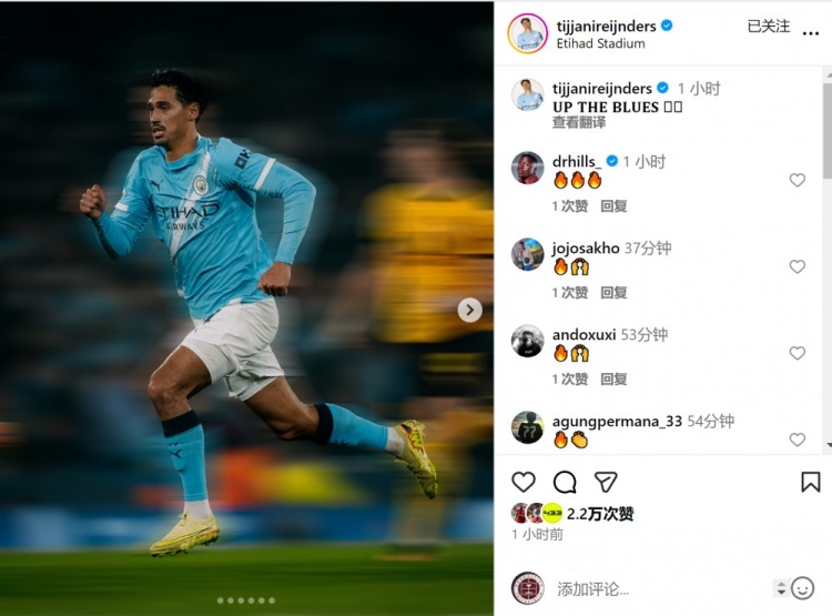 XiuSports > Football > Double assist! Reinders celebrates victory on social media: Come on Blue Moon