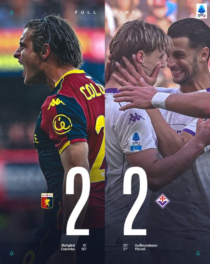 Fiorentina 2-2 Genoa in the relegation zone, Viola has yet to win this season and continues to be at the bottom