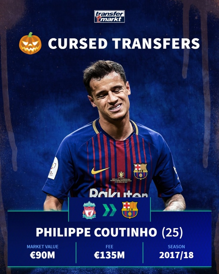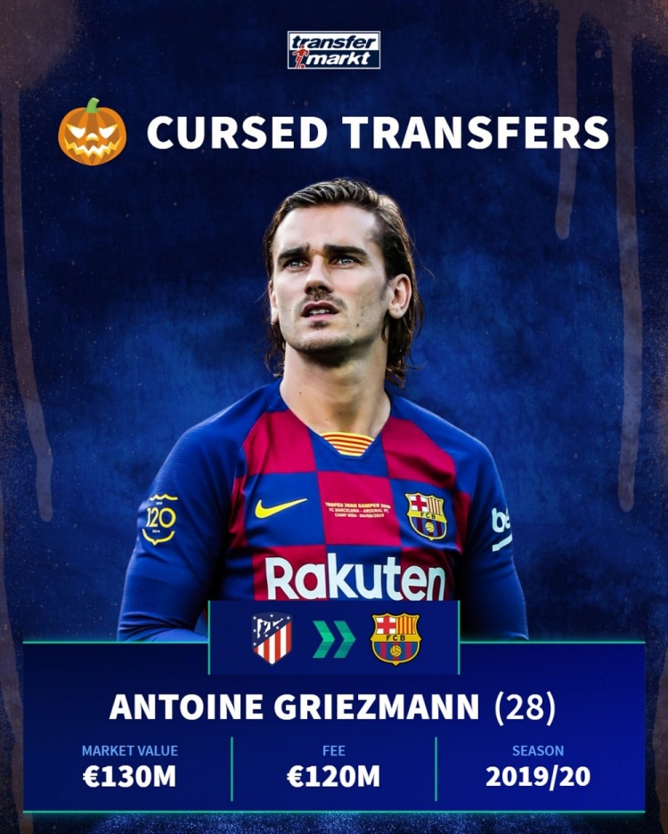On the occasion of Halloween, the German transfer market took stock of "cursed transfers." The "cursed transfer" of Germany: Hazard - Chelsea → Real Madrid - 120.8 million euros Sancho - Dortmund → Manchester United - 85 million euros Coutinho - Liverpool → Barcelona - 1.3 500 million euros Nkunku - Leipzig → Chelsea - 60 million euros Griezmann - Atletico Madrid → Barcelona - 120 million euros Lukaku - Inter Milan → Chelsea - 113 million euros