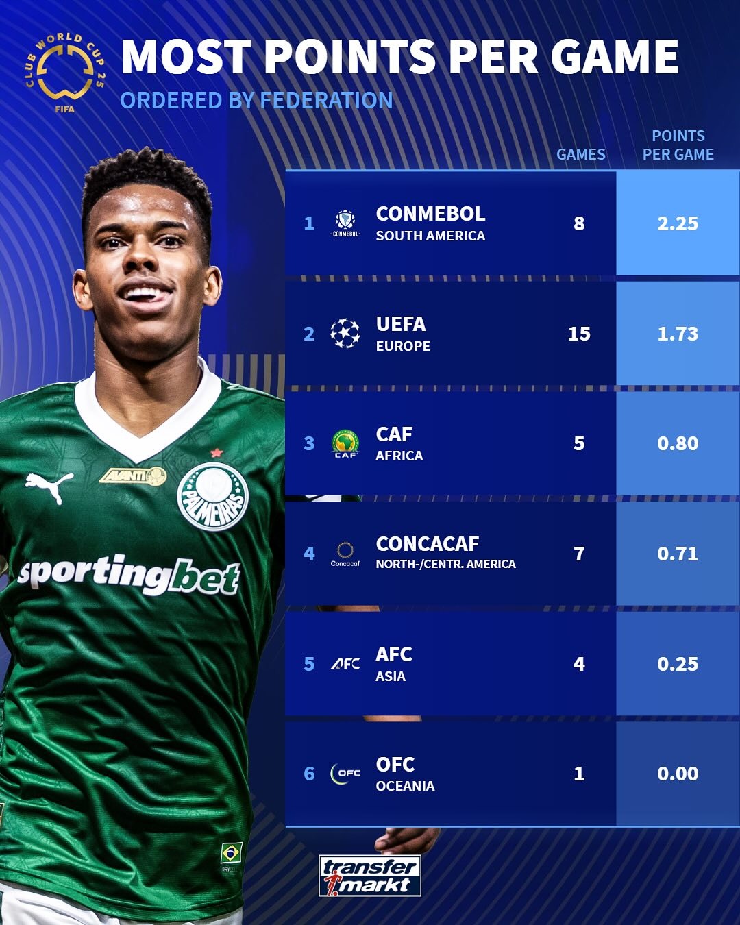 In the second round of the Club World Cup, two South American Football Teams played first, Palmeiras defeated Cairo Nationals 2-0, and Botafogo defeated Paris 1-0. So far, the South American team has achieved an unbeaten record of 5 wins and 3 draws, while the UEFA team has suffered 3 losses, with a record of 7 wins, 5 draws and 3 losses.