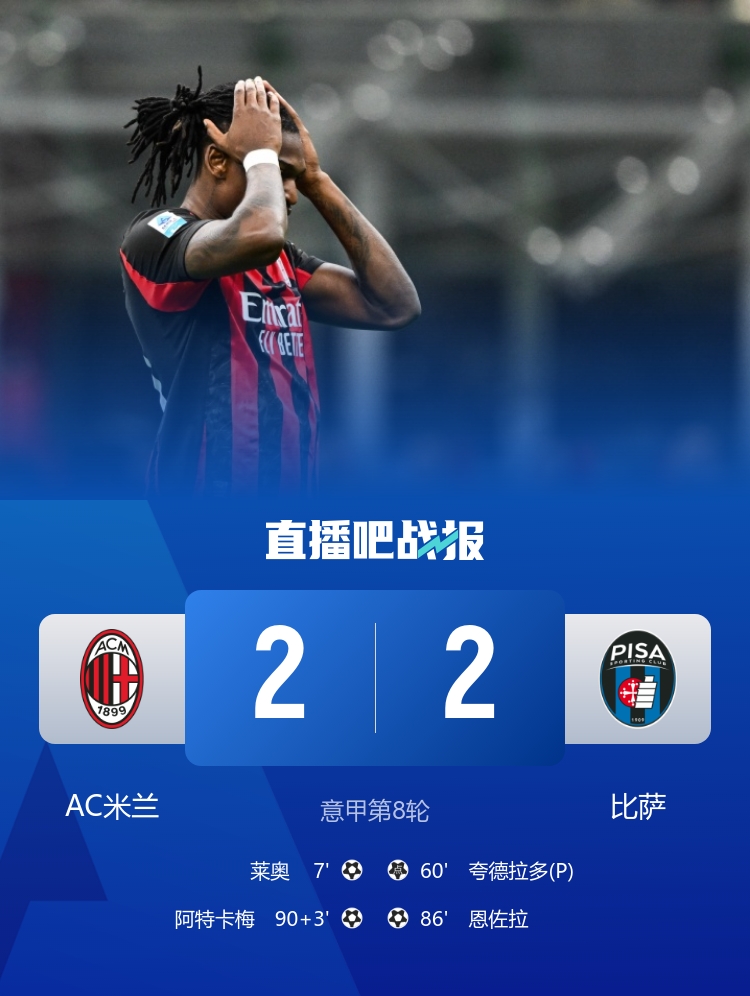【Game Report】 Only led by 2 points in the first game! Milan 2-2 Pisa is undefeated in 8 games in all competitions. Leo scores a goal and Atecarme is tied with . Is the top spot in danger? Serie A standings: Milan only leads by 2 points in the first game. Inter Milan will play away to Naples Milan drew 2-2 with newly promoted Pisa in this round. Leo and Artecamé scored from long range. Salle Marcos unfortunately missed the last-minute winner. After this campaign, Milan took the lead with 2 points. First win in the past four rounds! Leeds United 2-1 West Ham United, Aaronson blitzed Rodon to score, and the Hammers were winless in six rounds Leeds United defeated West Ham United 2-1 in this round of the Premier League. While Leeds United won a long-lost victory, it also sent the Hammers to a six-match winless streak. qualified! U17 Women's World Cup: China 4-0 Ecuador advanced to the top 16, four small flowers scored U17 Women's World Cup Group C, China played against Ecuador, Zhou Xinyi, Zeng Yijie, Chen Ruilin, and Song Yu scored successively. The Chinese team won 4-0, and the second place in the group advanced to the top 16. Saudi United-Riyadh Crescent defeated Jeddah United 2-0 and was temporarily promoted to third place. Leonardo scored. Saudi United were the focus of this round. Jeddah United lost to Crescent 0-2. Leonardo scored and Dubya had an own goal. [Other News] BBC: Fee B has a release clause of 65 million euros. He has no intention of going to Saudi Arabia but will consider other European leagues. BBC news. Fee B’s renewed contract contains a release clause of 65 million euros, which is applicable to non-English teams. Reject Saudi Arabia’s weekly salary offer of 700,000! Fee B: I want to win more for Manchester United. This is the original intention of signing the contract My wife persuaded me to stay with the team❗ Fee B: She asked me if I had accomplished everything at Manchester United? She knows that I haven't Manchester United captain B Fee accepted an exclusive interview with The Times. He talked about his habit of collecting souvenirs, the inside story of Xia Chuang’s rejection of Saudi Arabia’s sky-high offer, his views on new players and his expectations for the future. Return to the home court to watch the game! Robben: Bayern is almost invincible at the moment. We are the favorites in the Champions League final Bayern legend Robben recently returned to Munich with his son to watch the Champions League game and accepted an interview on the official website after the game. It’s hard to put out a fire! West Ham are currently second in the league without a win in 6 games. After Nuno coached, they had 1 draw and 3 losses In the ninth round of the Premier League, West Ham lost 1-2 away to Leeds United. Nuno suffered three consecutive defeats after taking charge of West Ham, with 1 draw and 3 losses yet to win his first victory. Pique: Real Madrid is dissatisfied with Yamal’s remarks? Understandable, they also want to have Yamal During the King League, Yamal appeared as a guest. Pique talked about Yamal's recent controversial remarks during the live broadcast. Slott: I hope Salah will never accept the substitution calmly. If I choose him as my savior, I will still choose him. Liverpool coach Slott once again talked about Salah's situation in an interview. He expressed that he hoped Salah would be angry about not being able to start and would never be satisfied. Cobe: Real Madrid’s internal evaluation of Yamal’s performance was clumsy, and his words and deeds were in line with his disrespectful style. Kobe Radio reported that the Real Madrid locker room was not too surprised by Yamal’s shocking remarks calling Real Madrid “stealing” before the national derby, and even felt “used to it.”