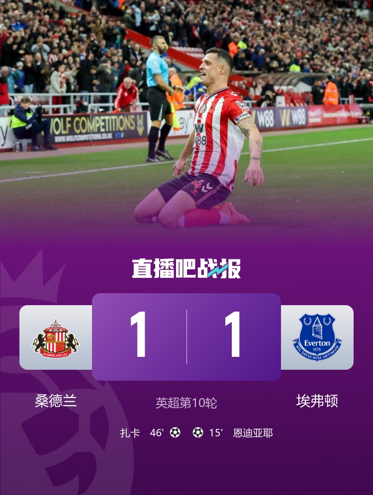 N'Diaye scored to open the scoring. Xhaka volleyed and equalized the score. Keane's handball in the penalty area was not punished. In the end, Sunderland 1-1 Everton was promoted to fourth place.