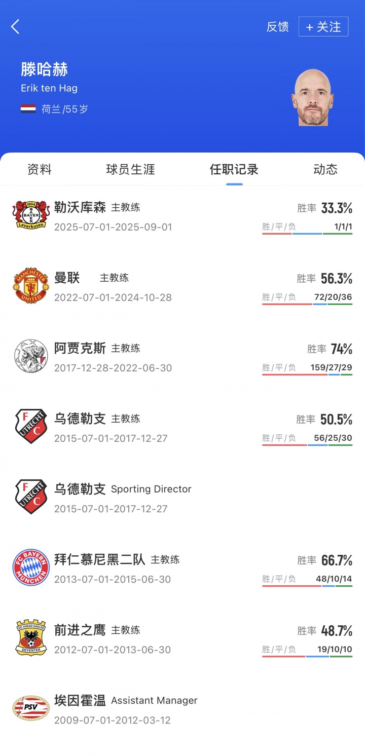 According to multiple Dutch media reports, Ten Hag has refused to return to Ajax after being contacted on Monday. It is reported that Ten Hag does not believe that a return to Ajax is feasible at the moment because there will be a lack of sufficient basis for successful cooperation in the short term. On November 6, Ajax announced the dismissal of coach Heitinga, who had only been in office for 4 months. Ten Hag became the head coach of Bayer Leverkusen in the summer window, but he was fired by the pharmaceutical company "Lightspeed" after only leading the team for 2 rounds of the Bundesliga.