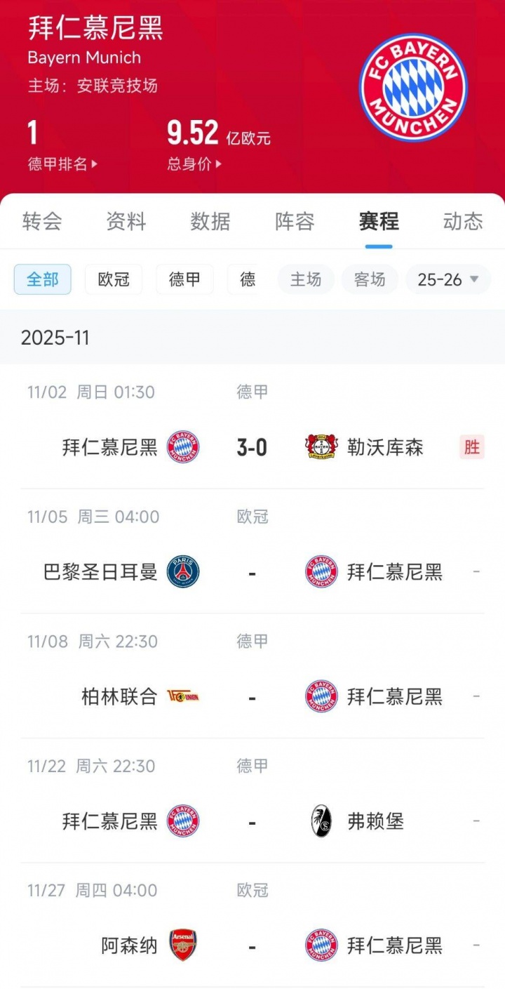 In the 9th round of the Bundesliga, Bayern defeated Bayer Leverkusen 3-0, winning 15 consecutive games in the new season and scoring a total of 54 goals. Bayern averages more than 3 goals per game, and has only failed to score 3 goals in 2 games: 2-1 Stuttgart in the German Super Cup, and 2-1 Dortmund in the 7th round of the Bundesliga. In other words, Bayern's game is guaranteed to be 2 goals, and 3 goals and above are commonplace. However, Bayern will face Paris in the Champions League next week, and will also face the "strongest shield" Arsenal at the end of the month. Peak showdowns and conflicts can be a feast for your eyes this month.