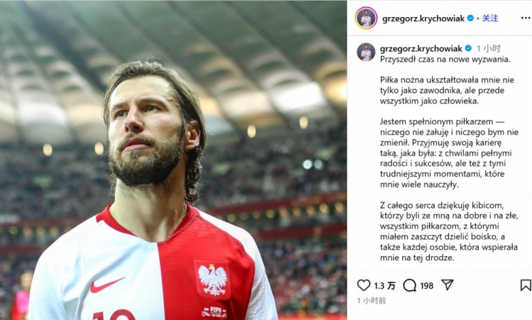 The 35-year-old Polish midfielder Krychowiak posted a message on social media today, officially announcing his retirement. In his career, he has played for Paris Saint-Germain, Sevilla, Nantes, West Brom and other teams. He contributed 61 goals and 36 assists in a total of 517 first-team games. He also played 100 games for the Polish national team, contributing 5 goals and 6 assists. His farewell letter is as follows: It is time to face new challenges. Football has not only shaped my career as an athlete, but also shaped my personality. As a player, I have no regrets - I neither regret any choices nor rewrite any chapters. I fully embrace my career: there have been moments of joy and success, as well as difficult times that have taught me profound lessons. My heartfelt thanks to the fans who have always stood by me through thick and thin, to all the players who have played alongside me, and to everyone who has supported me on this journey. Thank you to my family and my beloved wife - without you, none of this would be meaningful. Football is always worth fighting for...